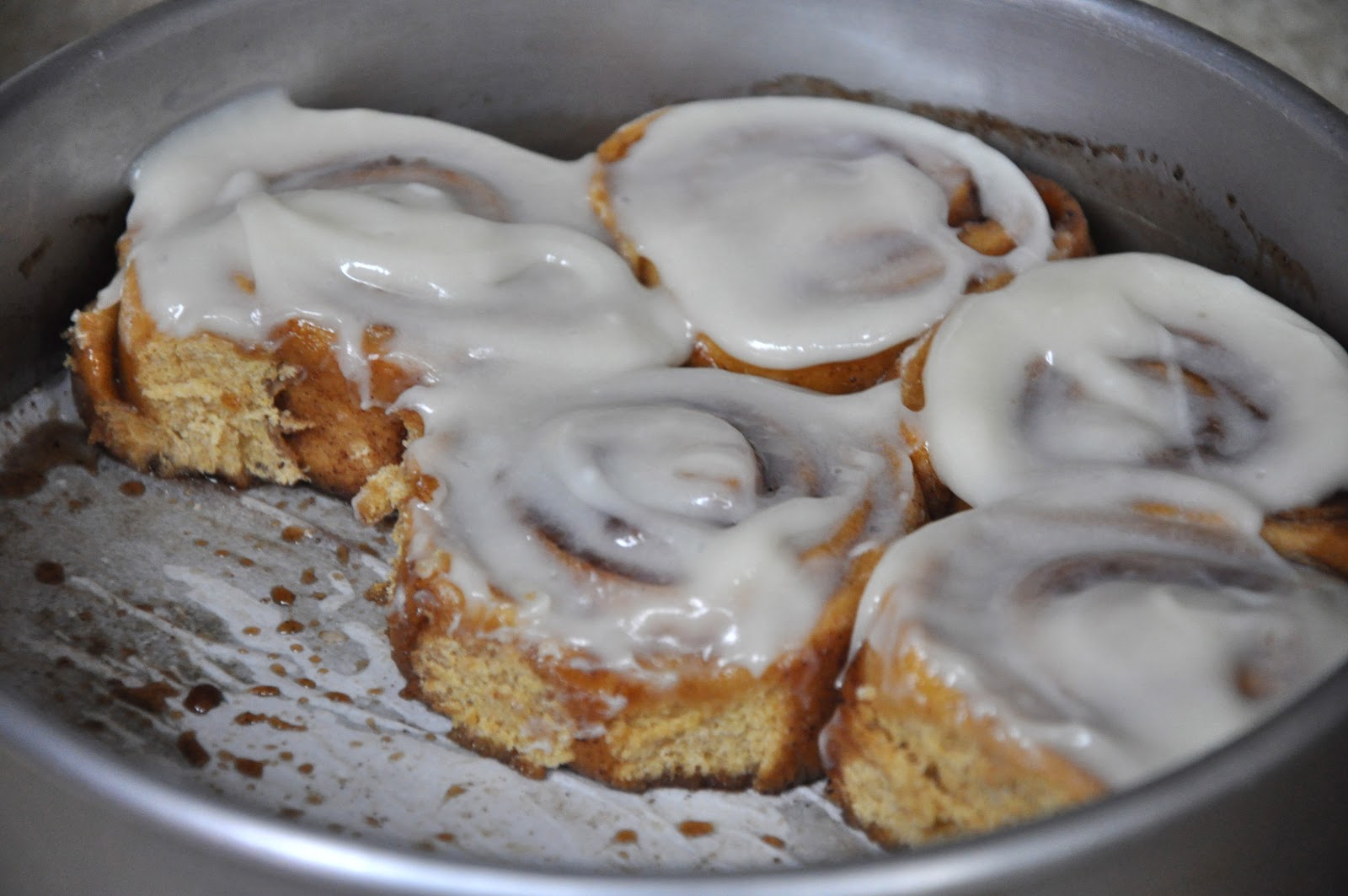 I originally set out to make a big batch of indulgent pumpkin cinnamon buns, but it ended up not really working out when I realized that I only had part of the pumpkin for the recipe, and decided to throw in some Greek yogurt instead. It ended up working out kind of like the classic chocolate mayonnaise cake, where you don't taste the secret ingredient, but it makes everything more moist and delicious.
